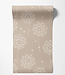 Fijn botanisch patroon met delicate paardenbloemen op een warme zandkleurige achtergrond. Het dessin voelt licht en vriendelijk, met een natuurlijke balans.