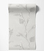 Luchtig botanisch dessin met ranke stelen, fijne bladeren en subtiele texturen. De ivoorkleurige basis versterkt het rustige karakter en laat het patroon bijna zwevend ogen.