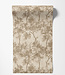 Sfeervol bosdessin met ranke bomen en verfijnde bladstructuren, opgebouwd uit kleine decoratieve details. De taupetinten geven het geheel een warme, klassieke uitstraling.