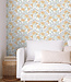 Zonnig, botanisch en elegant: Flora met grote chrysantachtige bloemen in warm geel/oker, omringd door koele grijsgroene bladeren. De handgetekende look geeft je muur een kunstzinnige, vintage‑moderne uitstraling. Lees meer..
