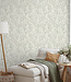 Flora Bloesem in saliegroen voelt als een frisse ochtendwandeling: een verfijnd takkenpatroon met witte bloesems en zachte kleuraccenten die het dessin levendig houden, zonder druk te worden.