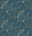 Een donkerblauwe bosweide vol kleine verrassingen: hertjes, vosjes, konijntjes en vogels tussen blad- en bloemvormen. In donkerblauw komt het dessin extra mooi tot zijn recht en krijgt je ruimte direct meer karakter. Prachtig als accentmuur achter het bed, in de hal of in een stoere kinderkamer met hout en warme verlichting.
