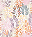 Botanisch op helder wit met lila en perzik: licht, vrolijk en modern zonder druk te worden. In bladeren paars/oranje komt het dessin extra mooi tot zijn recht en krijgt je ruimte direct meer karakter. Leuk in de kinderkamer, werkkamer of logeerkamer; combineer met pastel accessoires en licht hout.