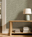 Een elegant dessin van fijne botanische motieven, waarin bladeren en bloemen subtiel over elkaar heen bewegen. De zachte groentint versterkt het natuurlijke karakter van het patroon.