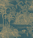 Behang Eden tropisch tafereel blauw/goud <span id="btnFittingRoom" onclick="openSpecificFittingRoom(..