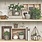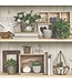 Sfeervol behang met een houten muur met planken vol gezellige spulletjes.